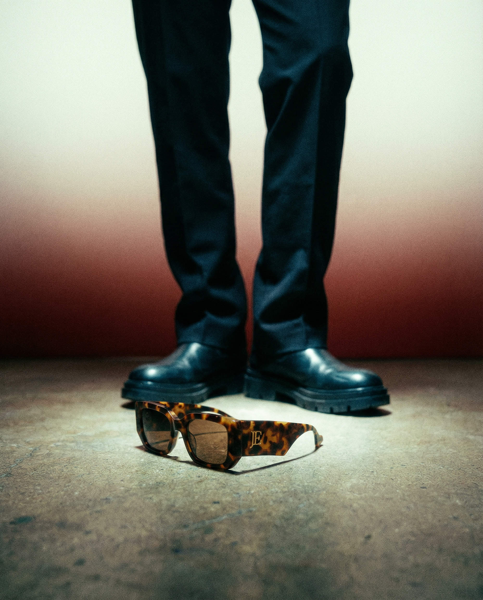 Materials: Hand-selected Italian acetate, aerospace titanium, and polished gold-tone accents. Finishes: matte blacks, deep gunmetals, and J|E red linings.
